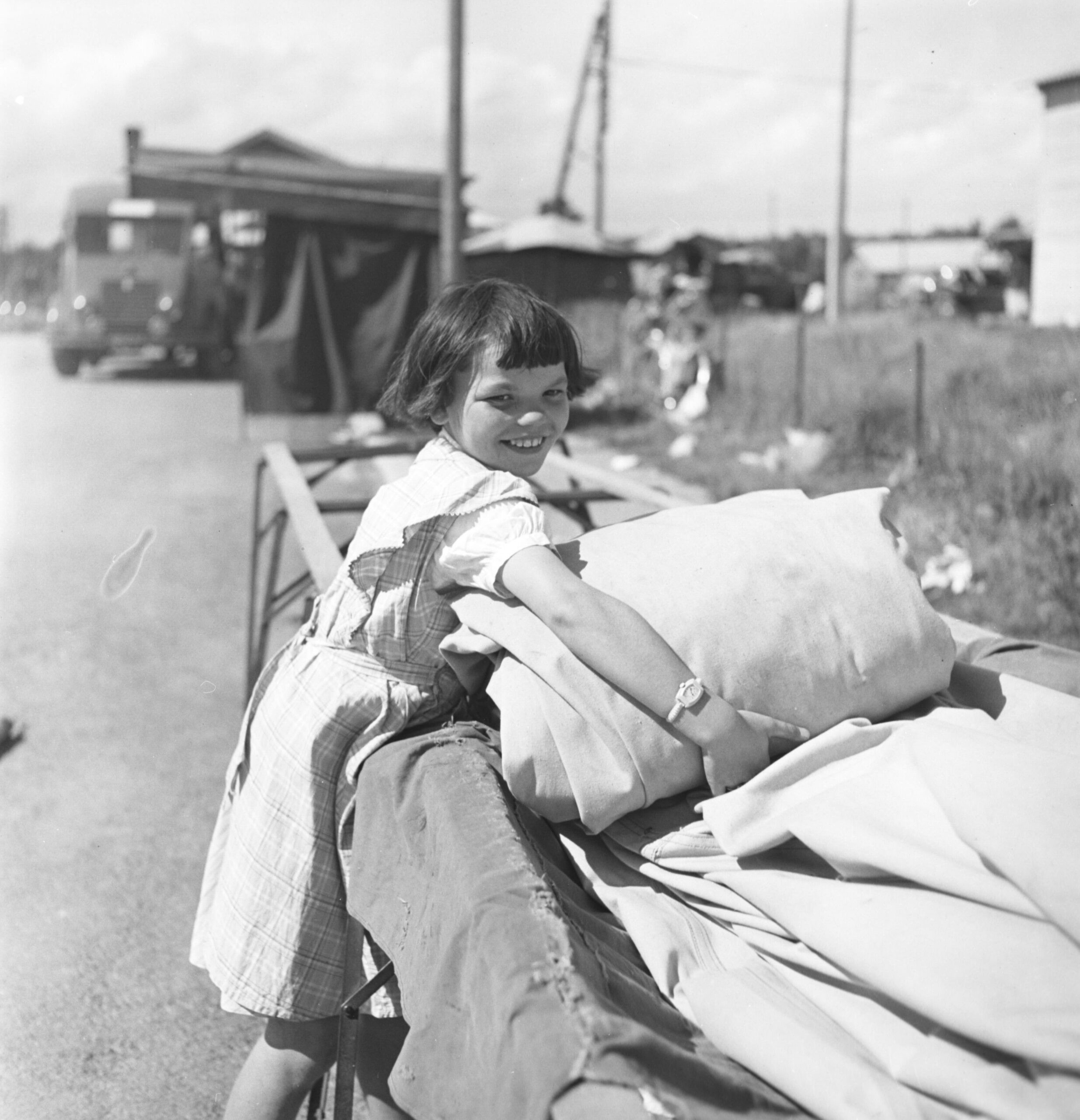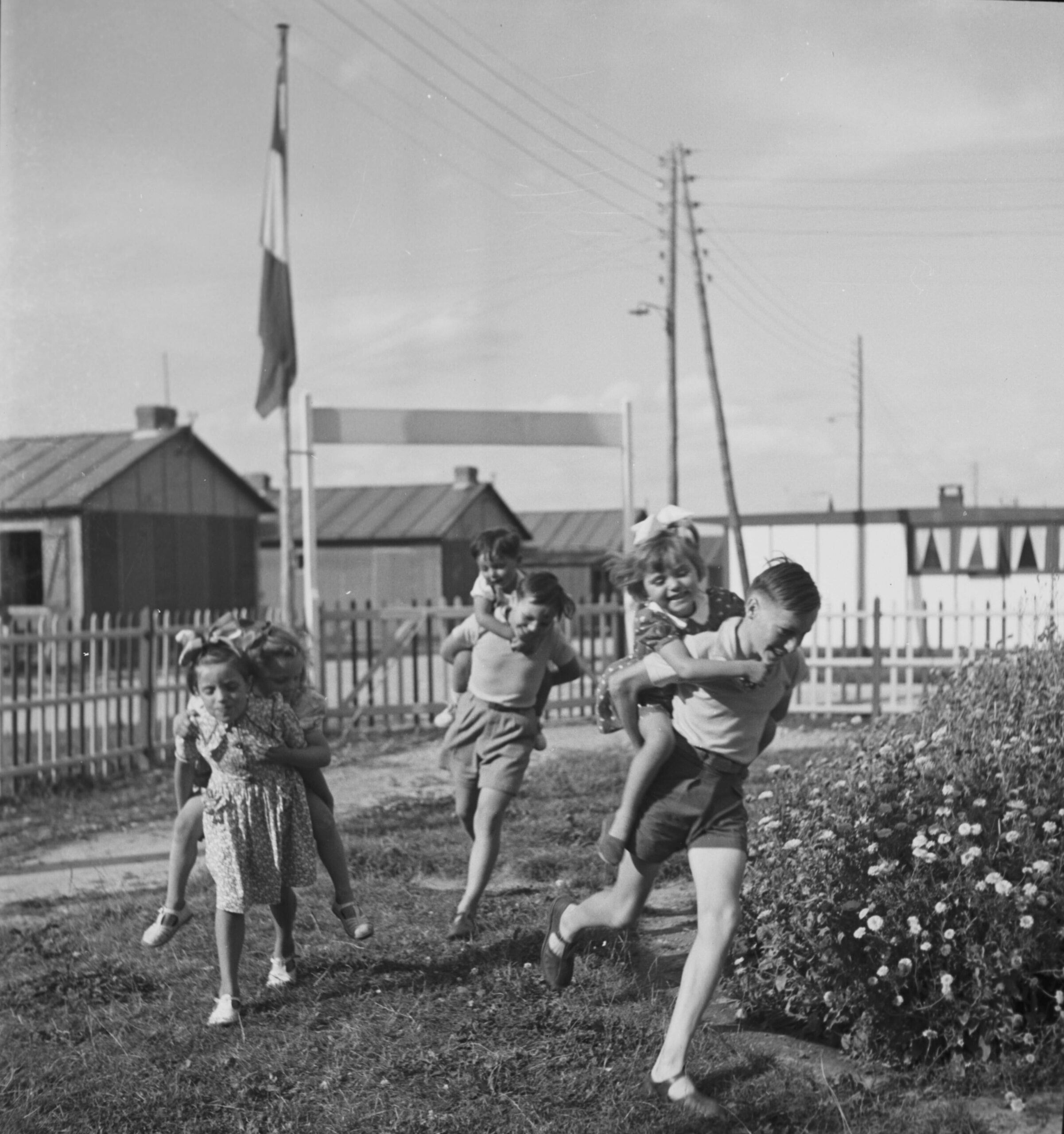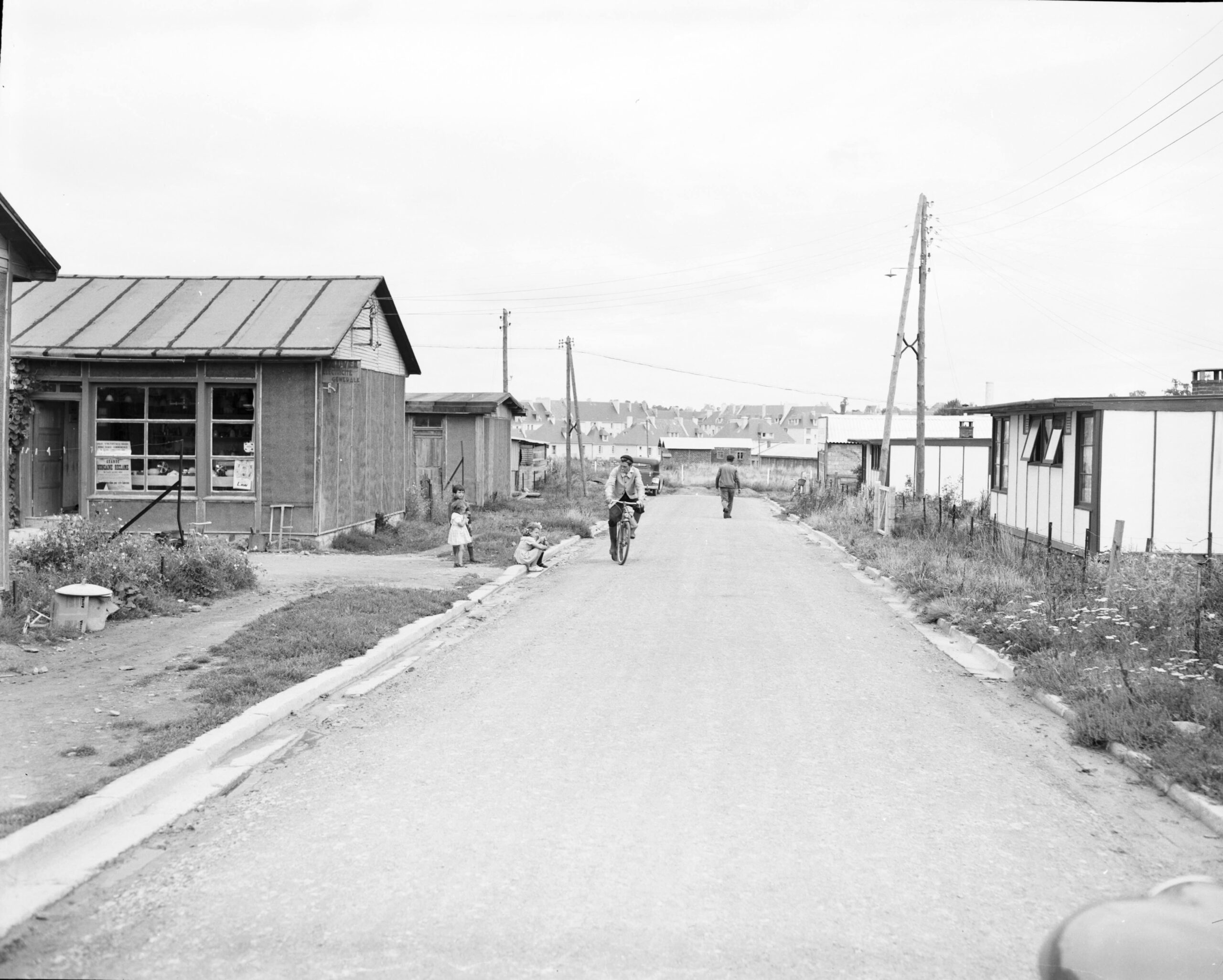 Ces moments de vie, délibérément optimistes, montrent des Français installés dans une cité provisoire à quelques centaines de mètres des ruines de leur village complètement détruit par les bombardements alliés au lendemain du Débarquement.