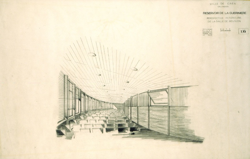 Si la demande du maître d’ouvrage pouvait paraître simple à énoncer, sa concrétisation relevait d’un véritable défi technique et organisationnel. L’architecte et son bureau d’études devaient en effet être capables de réunir, sur un terrain rectangulaire contraint, en une seule construction : à la fois, un réservoir de 3.000 m3 pouvant alimenter ce nouveau quartier en construction à la périphérie de Caen, un marché couvert de 1.500 m2 et un centre administratif !
