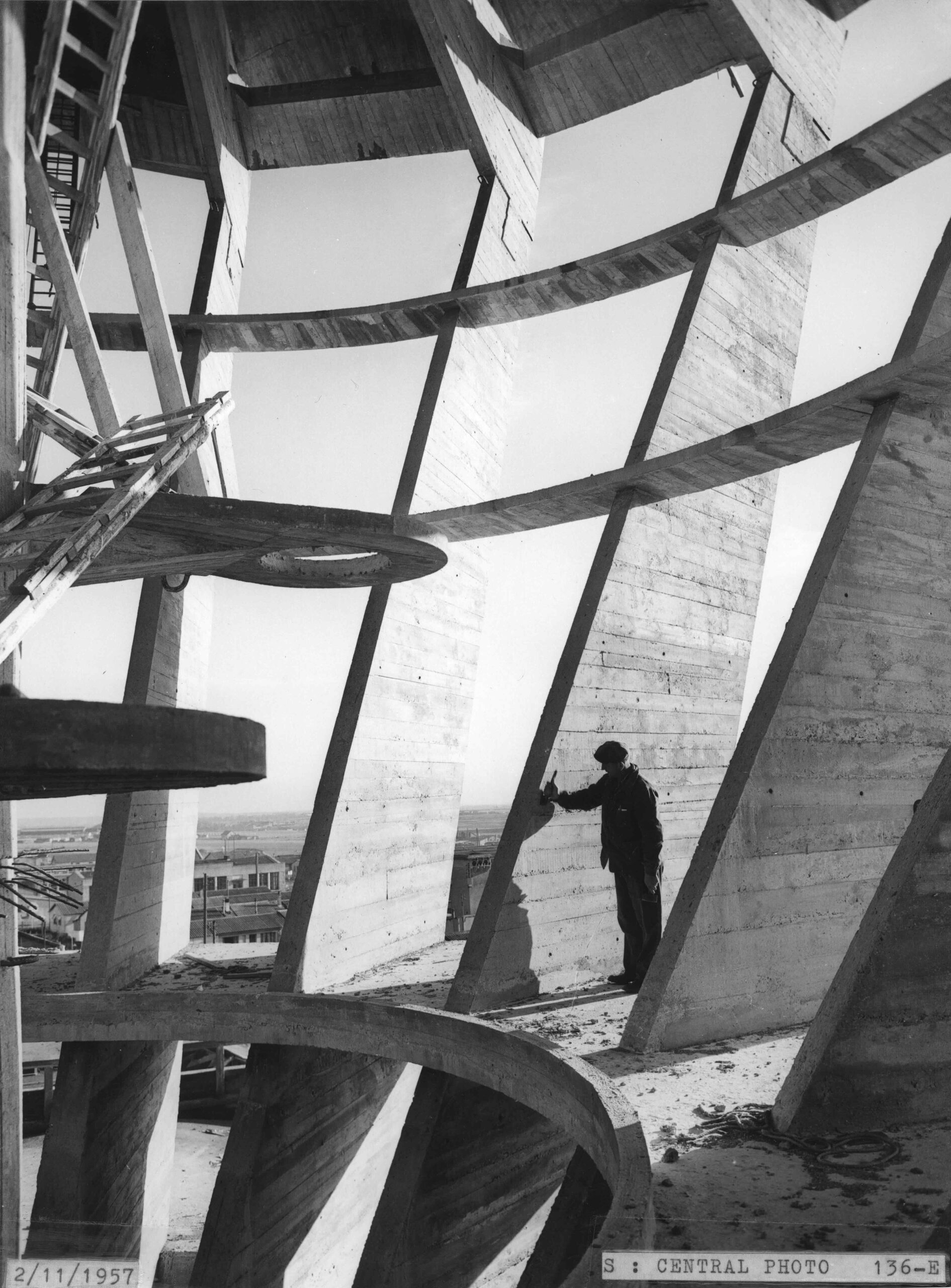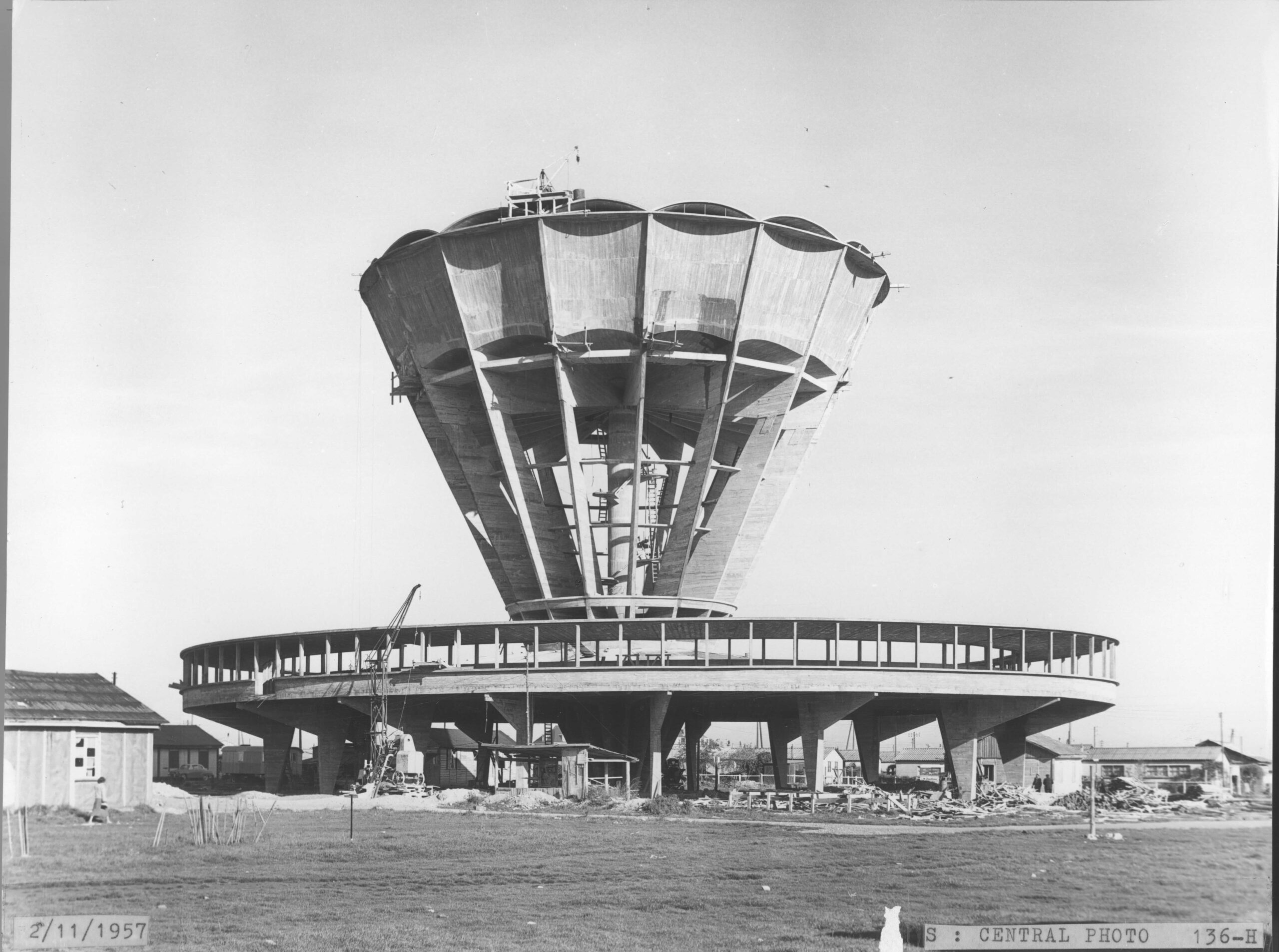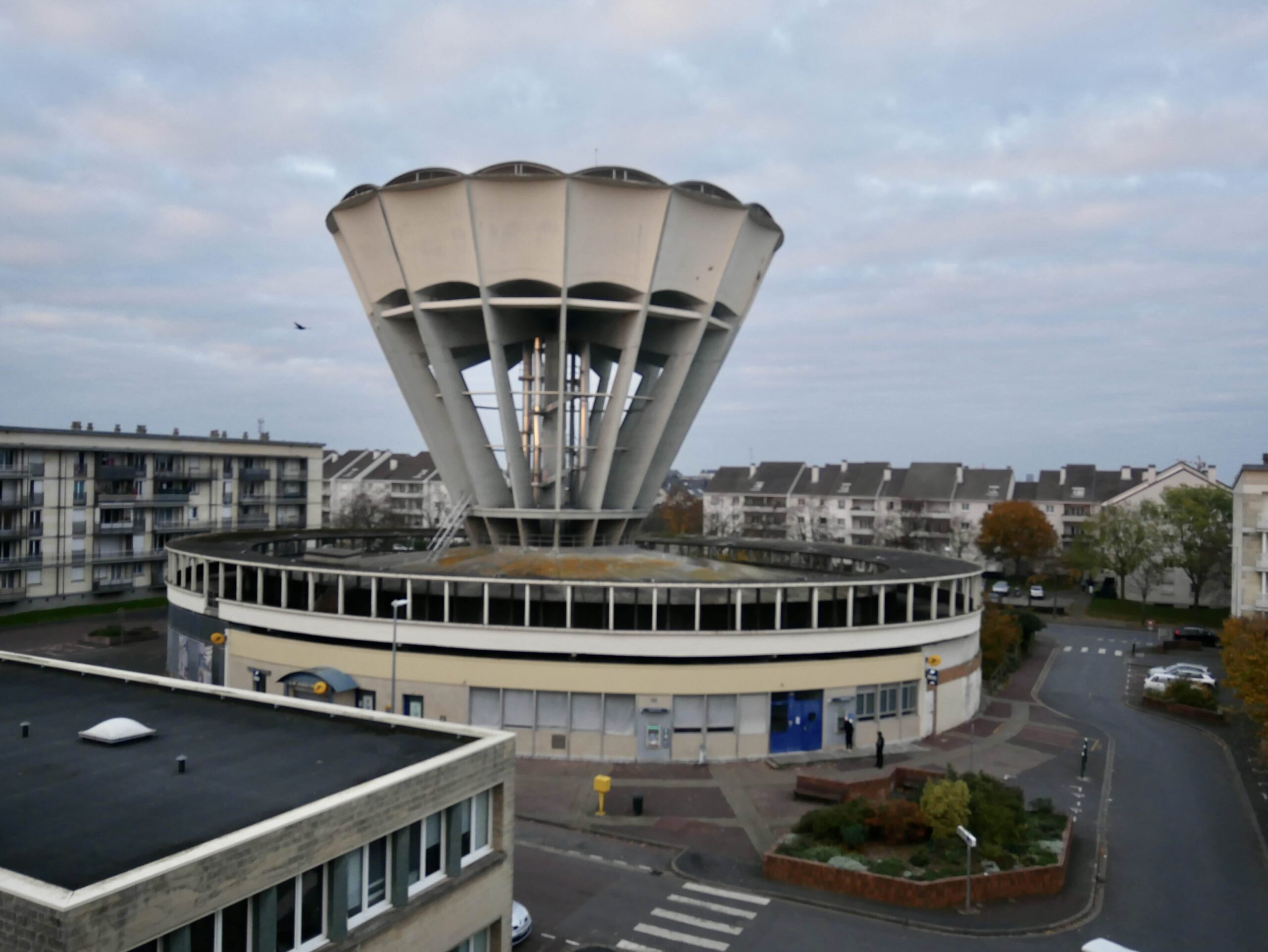 Œuvre de l’architecte Guillaume Gillet, à qui on doit notamment l’église Notre-Dame de Royan, et de l’ingénieur René Sarger, le château d’eau de la Guérinière à Caen est l’un des plus étonnants réservoirs construits en France.