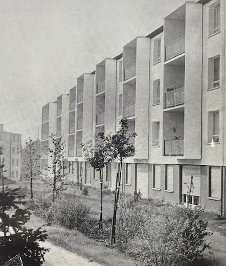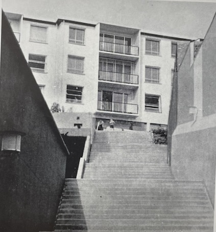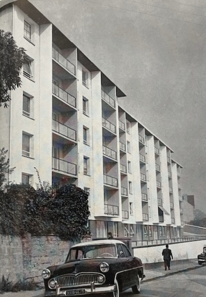 Ces immeubles de l’architecte Georges Goldberg sont un bel exemple des programmes de logements du ‘’ type H.L.M. améliorés’’ qui se sont multipliés à partir du milieu des années 50 à destination des ‘’cadres’’ ; un groupe social émergeant en forte croissance dont les revenus ne permettaient pas d’accéder aux logements sociaux.